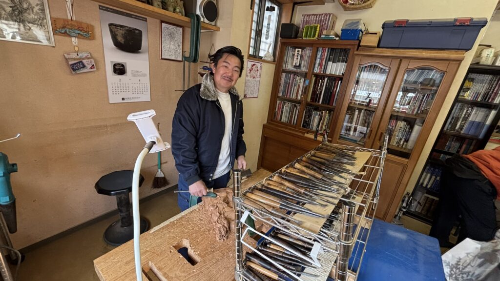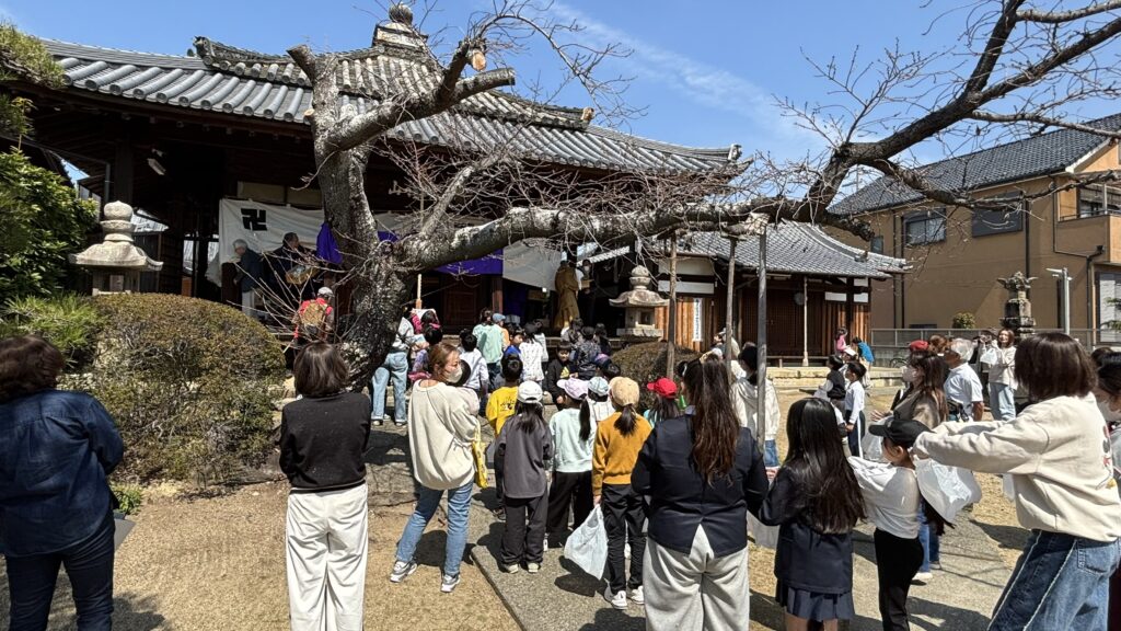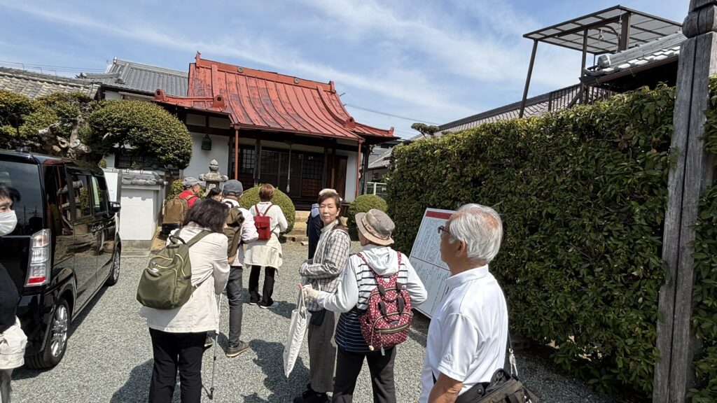 スタッフの研修会で和泉橋本周辺を探索しました お知らせ 2026.03.25 3月24日(火) 貝塚イオン店に集合し、だんじりの彫り物など手掛ける木彫山本さま作業場、南近木神社、丸山古墳、吉祥天女をお祀りしている吉祥園寺、 正福寺の勝軍地蔵、下出さま宅お庭の卜半椿をはじめとする100本以上ある各種椿を見学しました。ボランティアガイド協会ではスタッフの勉強会にも力を入れています。ご興味のある方はご連絡ください。 作業場での山本さま 高価なノミが100本以上 吉祥園寺に向かうガイド一行 下出さま宅の椿見学 正福寺で餅まき供養 正福寺の勝軍地蔵